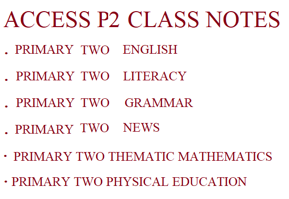 This Product contains a combination of all the Primary Two subjects learnt in school.